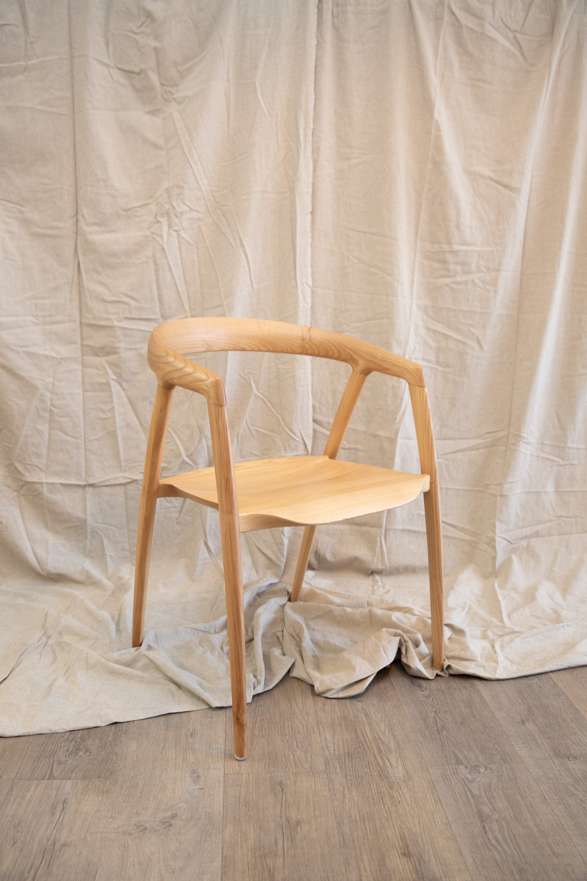 Es una pieza hecha a mano, con curvas suaves y un respaldo que abraza. Su diseño escandinavo y acabado natural aportan ligereza visual y comodidad auténtica a cualquier espacio.