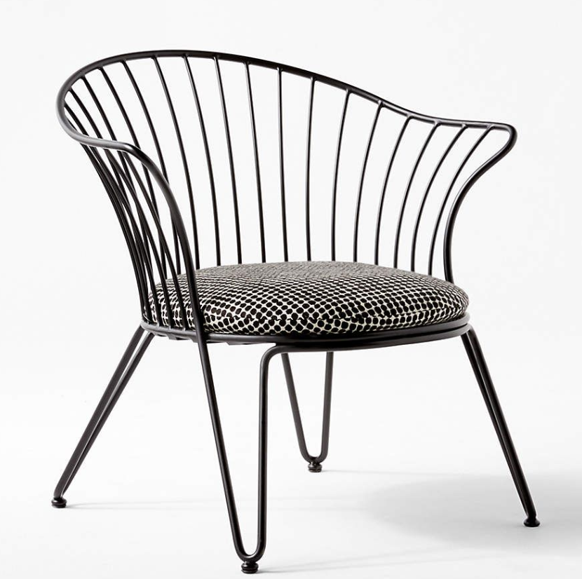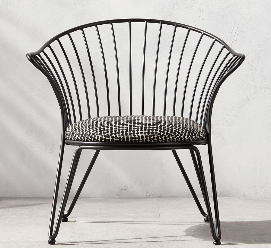 Corola, con su respaldo amplio en fierro curvado y cojín tapizado a medida, es perfecto para dar un acento sofisticado a salas de estar, recibidores o rincones de lectura.